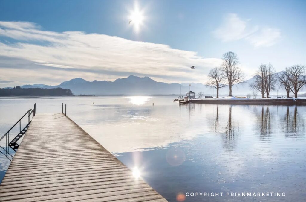 2,5km entfernt – Mit dem Rad oder Auto super zu erreichen. Nach wenigen Gehminuten durch Chieming seid ihr am Wasser. Die Badeplätze sind flach abfallend. Spielplatzanlagen, Eisverkäufer, Bootsverleiher und eine weitläufige Fußgängerzone runden den Tagesausflug ab.